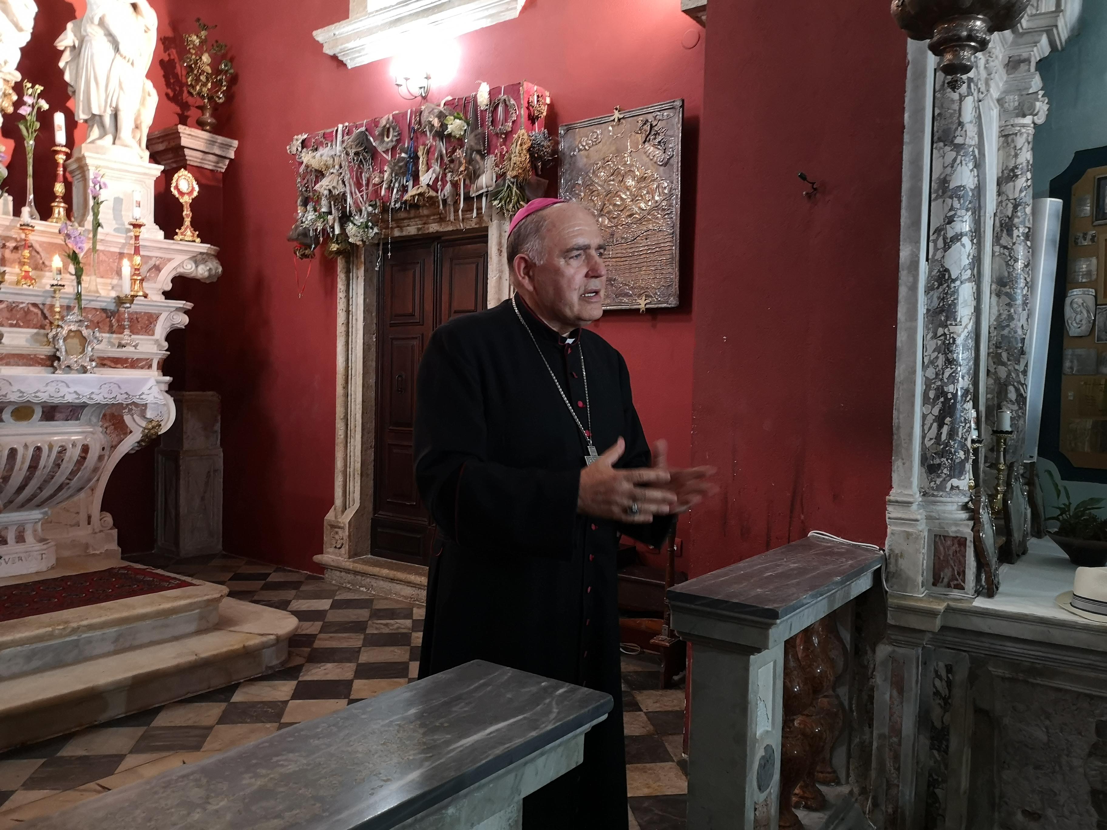 Mons. Marin Barišić je u svojoj homiliji govorio o daru svećeništva i izazovu svećeničkog poziva. „Mi smo svjesni da ovo blago Božje ljubavi nosimo u svom životu koji je obilježen slabostima. I sv. Pavao kaže da se baš milost Gospodinova očituje u našoj slabosti. I to je dobro za nas i za druge. Zašto za nas? Da ne vidimo sebe, samodostatne i onda u toj svojoj oholosti, umišljenosti možemo zasjeniti i odstraniti milost Božju iz svog života. A s druge strane, drugi nas mogu vidjeti kao inteligentne, sposobne, a ne ljude od krvi i mesa, s kojima se Gospodin želi poslužiti u svom djelu spasenja. Evo taj moment Gospodin nama svima želi posvijestiti svakodnevno“. Prisjetivši se životnog puta mons. Janjića, koji je iz Bosne došao u Boku Kotorsku, nadbiskup Barišić je kazao: „Pripadaš Boki od rođenja. Evo i sam si rekao od tih prvih dana, da si pripadnik ove biskupije i da si je zavolio. A da si je zavolio vidimo i mi to, braća biskupi u našoj metropoliji, često puta smo osjetili koliko ti je draga Boka, ova kultura, ova tradicija ovdje, ovaj čovjek, i da doista si se posvetio potpuno i sa svojim svećenicima, i svojim redovnicima i svojim vjernicima da budete produžena ruka Kristove ljubavi. I evo danas, ovdje na ovom otoku Gospe od milosti, želiš zahvaliti Gospodinu na svemu što ti je dao i darova kroz ovih 50 godina. Dao ti je dar vjere, žive vjere koju si ti pokušao svjedočiti, jer vjera bez djela ne čini nas zadovoljnim i sretnim, nit nas ostvaruje.“ Zaključujući propovijed, nadbiskup Barišić je poručio: „Darovati život Bogu je mala stvar, mala je stvar posvetiti svoj život Bogu. Zašto? Jer Bog je velik. Vjerujem da si ti to osjetio kroz ovih pedeset godina, i želio bih da te Gospodin u tome podrži, i da budeš uvijek svijetli primjer i svima nama na tom istom putu poziva i poslanja“.