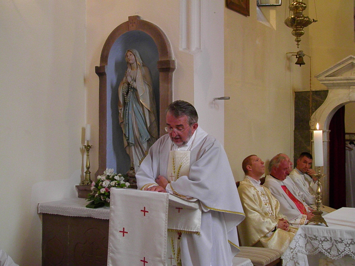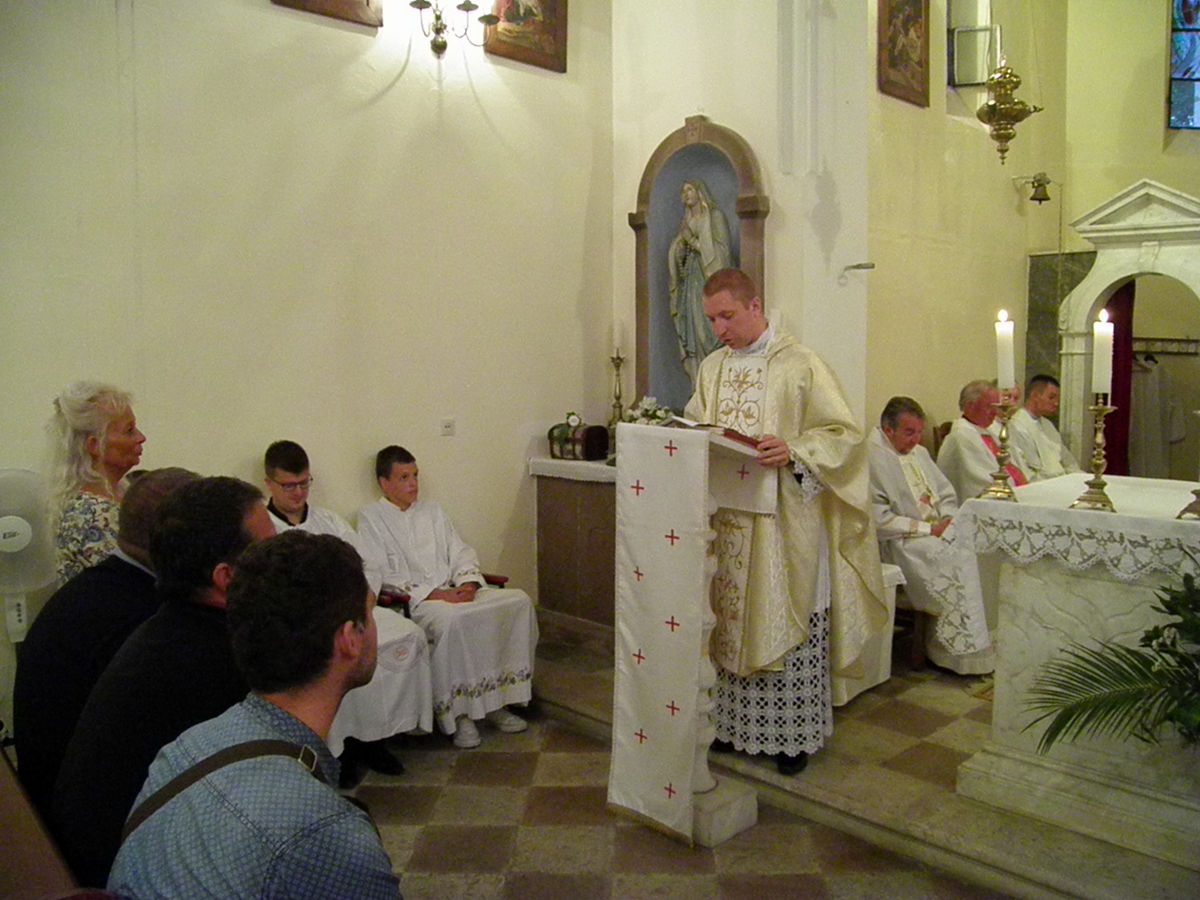 Prigodnu homiliju uputio je don Ivo Ćorić, prčanjski župnik. Govoreći o životu svetih Joakima i Ane, Bogorodičinih roditelja, podsjetio je na drevne izvore životopisa te na razvoj kulta prema sv. Ani i sv. Joakimu. Don Ivo je istakao da su oni uzor strpljivosti i pouzdanja u Božju milost, te je naglasio važnu ulogu kršćanskog majčinstva u suvremenom svijetu, podsjetivši da su pobožne majke najzaslužnije za usađivanje vjerskih i moralnih ideala, za prvi i najvažniji odgoj u čovještvu i vjeri. Govoreći o izazovima svećeičkog reda, don Ivo je ukratko pojasnio svrhu svećeništva: «Svećenik je osoba koju je Isus prvi zavolio i pozvao. Svećenikom ne postaje netko zbog toga što je bolji ili svetiji od drugih, nego zbog toga što je Bog dobar i poziva u svoju službu ljude koje je zavolio. Svrha svećeništva je navještaj Evanđelja za spasenje svih kojima je svećenik poslan». Obraćajući se mladomisniku poželio mu je ustrajnosti i povjerenja u Božji plan, ističući kako će često, kao Isusov sljedbenik slušati «Hosana!», ali i «Raspni ga!» u onom trenutku kad ne bude htio kompromitirati zakone Crkve i istinu Evanđelja. Unatoč brojnim kušnjama, svećenik je dužan nesebično darovati svoje vrijeme i svoju snagu za širenje Božje riječi – kazao je u zaključku don Ivo, ohrabrivši mladomisnika da ustraje u Kristovu pozivu kojemu je spremno odgovorio.