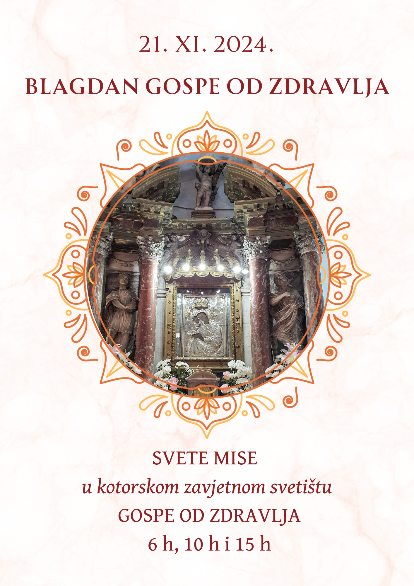 Na blagdan Marijina prikazanja u hramu – Gospe od Zdravlja, svete mise u kotorskom zavjetnom svetištu Gospe od Zdravlja bit će u 6, 10 i 15 h.
