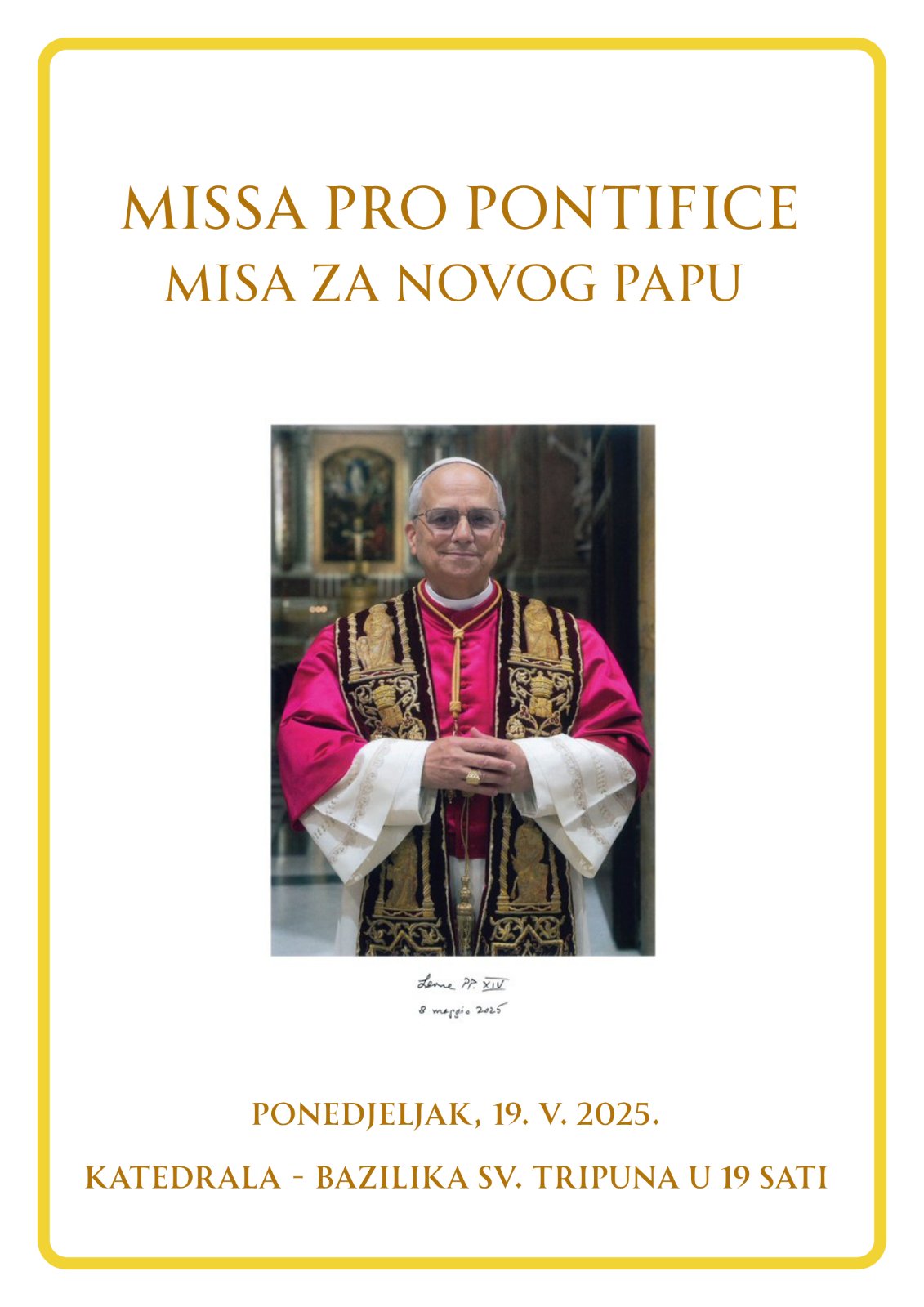 U ponedjeljak, 19. svibnja s početkom u 19 sati, u katedrali sv. Tripuna održat će se misa zahvalnica za novog papu Lava XIV.