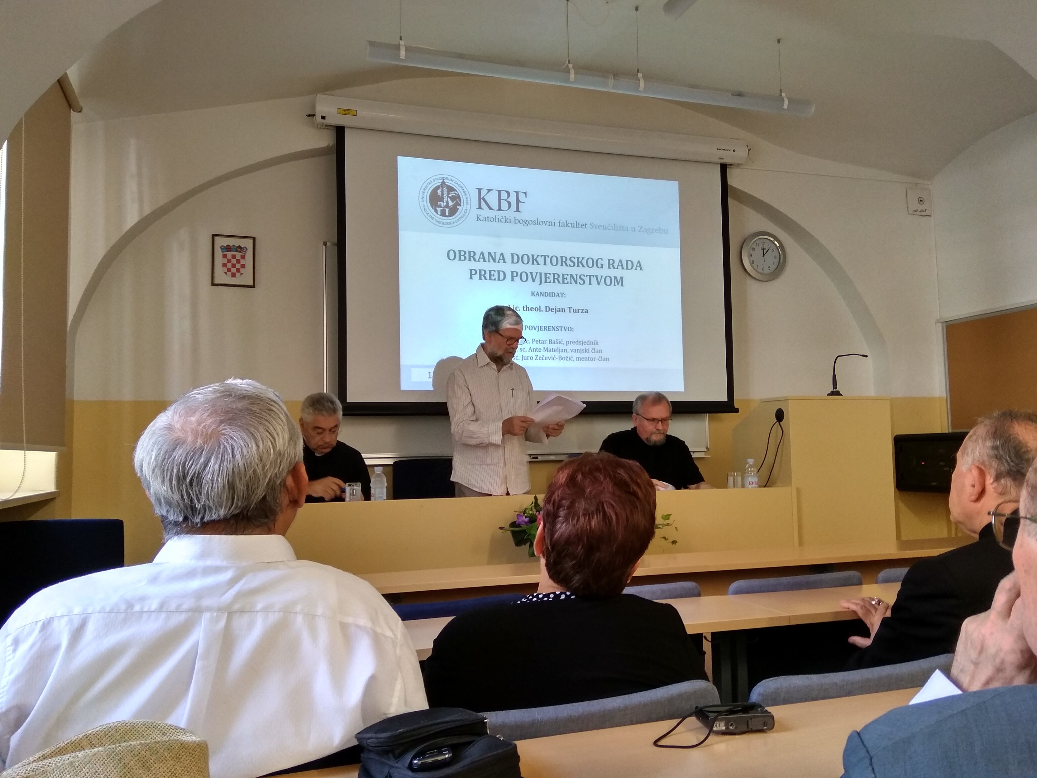 Novi doktor ekumenske teologije don Dejan Turza, sin Marije r. Štefić i Antuna Turze, rodom je iz župe Sv. Josipa Radnika, Belišće u Đakovačko-osječkoj nadbiskupiji. Rođen je 25. svibnja 1975. u Osijeku. Osnovnu školu završio je u Belišću a zvanje inženjera elektronike stekao je 2001. na Elektrotehničkom fakultetu u Osijeku. Studij na KBF-u u Zagrebu završava 2007. te je godinu dana kasnije zaređen je za svećenika Kotorske biskupije. Zavjetovani je član Franjevačkog svjetovnog reda od 2013. Nakon pastoralne službe u Donjoj Lastvi i Lepetanima od 2013. je upravitelj župa sv. Marije-Sutomore, Rođenja BDM-Sušanj i sv. Andrije-Brca te upravitelj svetišta Gospe Ratačke. U Kotorskoj biskupiji vrši više službi, tako od 2010. voditelj je pastoralne skrbi za mlade; od 2012. Povjerenik je za obiteljski pastoral, od 2014. Povjerenik za župnu katehezu i vjeronauk te od 2016. i Predstavnik Kotorske biskupije u radu Komisije za hrvatski martirologij. Član je Društva hrvatskih katoličkih novinara.