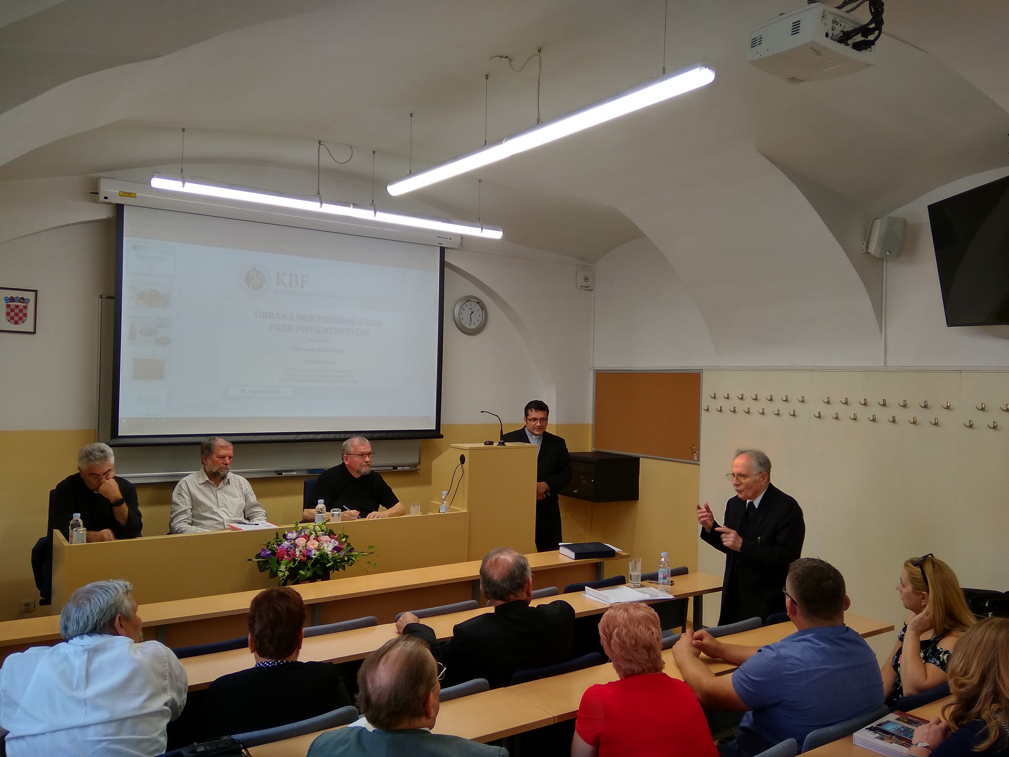Članovi povjerenstva bili su prof. dr. sc. Petar Bašić, predsjednik, prof. dr. sc. Ante Mateljan, vanjski član i prof. dr. sc. Jure Zečević-Božić, mentor-član. Novost i originalnost ovoga rada sastoji se u specifičnom pristupu temi koju su dosadašnja pisana riječ i znanstvena istraživanja doticala parcijalno, najviše kroz svetačke životopise. Do ovoga rada naime nije postojao sustavan i sveukupan prikaz katoličkih svetačkih likova Boke kotorske u suvremenom ekumenskom kontekstu. Stoga ovaj rad, uz svoj znanstveni doprinos, može doprinijeti i konkretnom unapređenju međureligijskog i interkulturalnog dijaloga kakav je potreban za konstruktivan suživot u suvremenim pluralističkim društvima. Svoj doktorski rad ispitanik je posvetio preč. gosp. don Pavi Medaču, kanoniku Kotorske biskupije koji je svojim nesebičnim zalaganjem u Biskupiji, trudom, marom i nadahnućem – veliki uzor novim generacijama svećenika. Ovom svečanom akademskom činu, uz doktorandove roditelje, brata s obitelji i prijatelje, nazočili su Kotorski biskup mons. Ilija Janjić, prof. emeritus Ivan Golub te drugi prijatelji i poznanici.