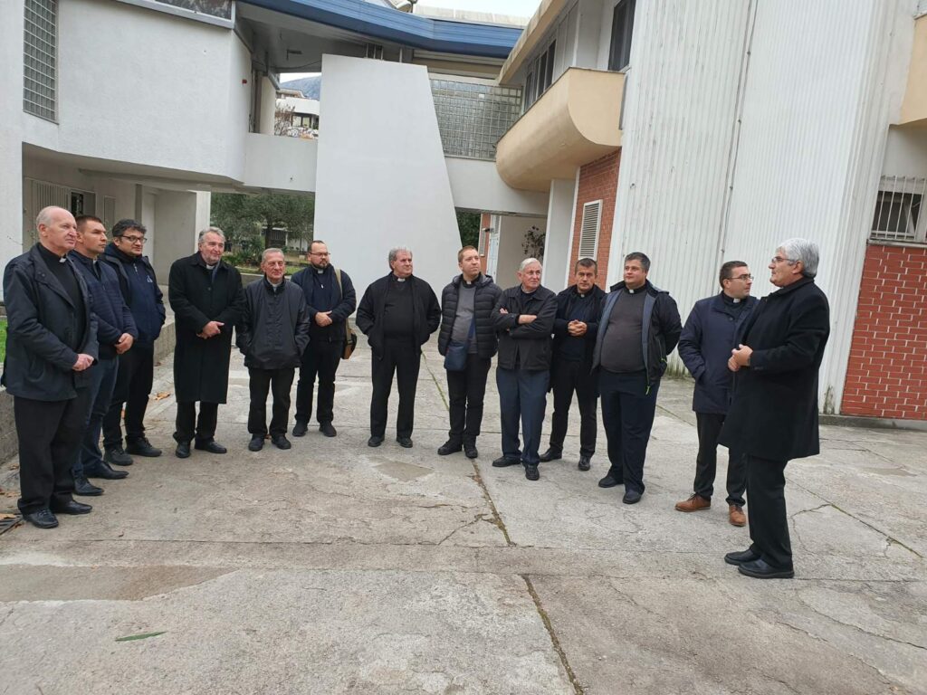 U srijedu, 17. studenog svećenici su uz vodstvo don Željka Majića, ravnatelja biskupijskog Caritasa, posjetili neke od ustanova biskupije. Najprije su se u kripti mostarske katedrale pomolili za pokojne biskupe, među kojima je sahranjen i mons. Marko Perić na čijem je grobu ovom prilikom biskup Štironja upalio svijeću.  Potom su posjetili ustanove Caritasa – kuću Nazaret i kuću Svete obitelji, u kojima djeluju centar za osposobljavanje osoba s poteškoćama u razvoju i rehabilitacijski centar za osobe s invaliditetom, ambulanta, stacionarni odjel i kreativna radionica. Ravnateljica centra, s. Suzana upoznala je svećenike sa širokim poljima djelovanja ovog centra, koji je u vrijeme prvog lockdown-a (zaključavanja) uz redovne aktivnosti, podijelio i preko 12 000 obroka.  Zatim su posjetili franjevačku crkvu sv. Petra i Pavla u kojoj ih je dočekao župnik fra Bože Milić i rastumačio nedavno dovršeno kompleksno likovno uređenje unutrašnjosti crkve, koje je u mozaiku i freskama izveo o. Marko Rupnik. Nakon župne crkve, posjetili su i čuvenu kapelu koju je svojim djelima uresio Aleksandar Zvjagin.