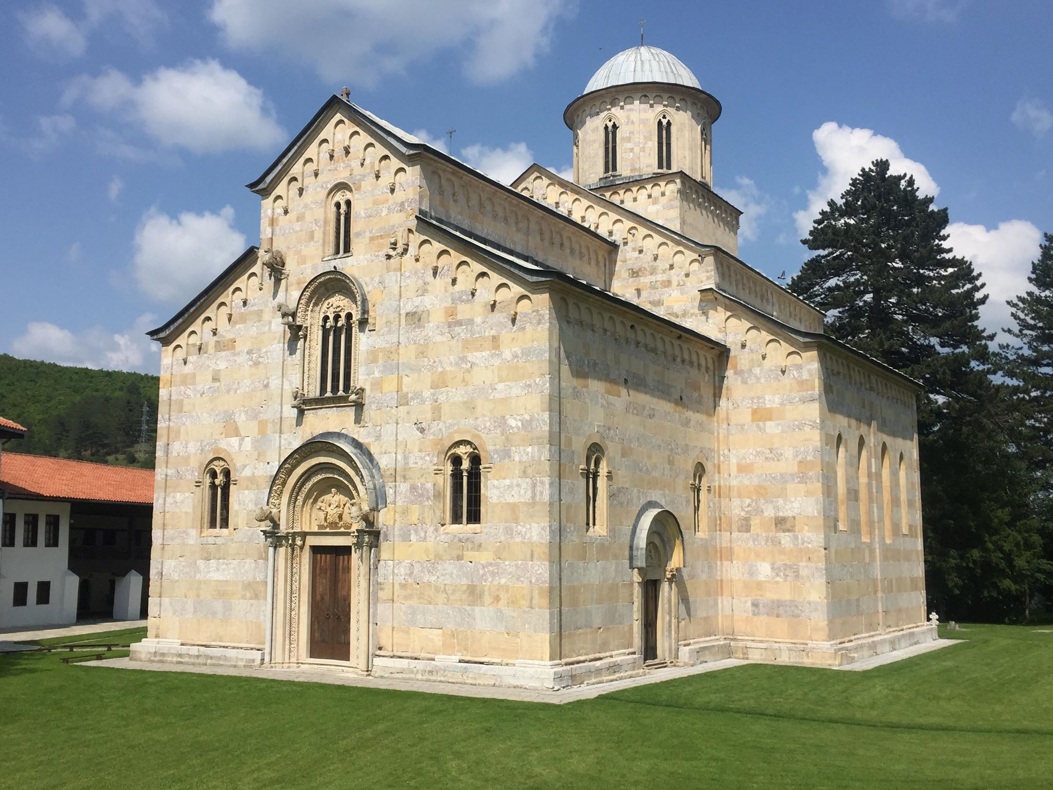 Nakon ručka u obližnjem restoranu krenulo se do manastira Visoki Dečani, jednog od najvažnijih manastira Srpske pravoslavne Crkve koji se nalazi na Kosovu,12 kilometara južno od grada Peć. Ovaj se manastir nalazi od 2004. na popisu UNESCO-ve svjetske baštine u Europi. Danas je manastir je pod zaštitom KFOR-a. Dočekao ih je i srdačno pozdravio domaćin, protojerej jeromonah Petar Rojević te prepustio stručnom vodstvu Srđana Jovanova.