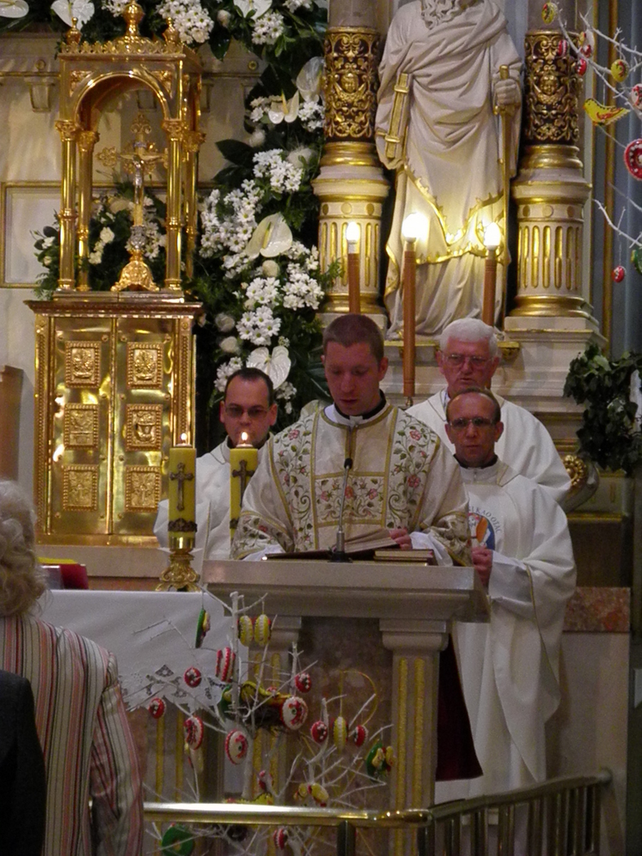 Misno slavlje svojim je pjevanjem uzveličao zbor župe i svetišta Gospe od Pojišana. Na kraju euharistijskog slavlja, fra Miljenko je također pozdravio sve prisutne, prisjetivši se hodočašća u Zaljev svetaca i predivnih dojmova kojima su bili ispunjeni nakon posjete Boki Kotorskoj. Okupljene vjernike je potaknuo da u ophodu oko Gospinog oltara osobito mole za nova svećenička i redovnička zvanja, naglasivši da su kapucini upravo radi pomanjkanja zvanja morali napustiti župu sv. Leopolda u Osijeku. Nakon svete mise, molitve u Svetištu Majke Božje Bistričke te obilasku istog, hodočasnici su se uputili su se prema Boki, u koju su uspješno stigli u ranim jutarnjim satima 17. travnja.