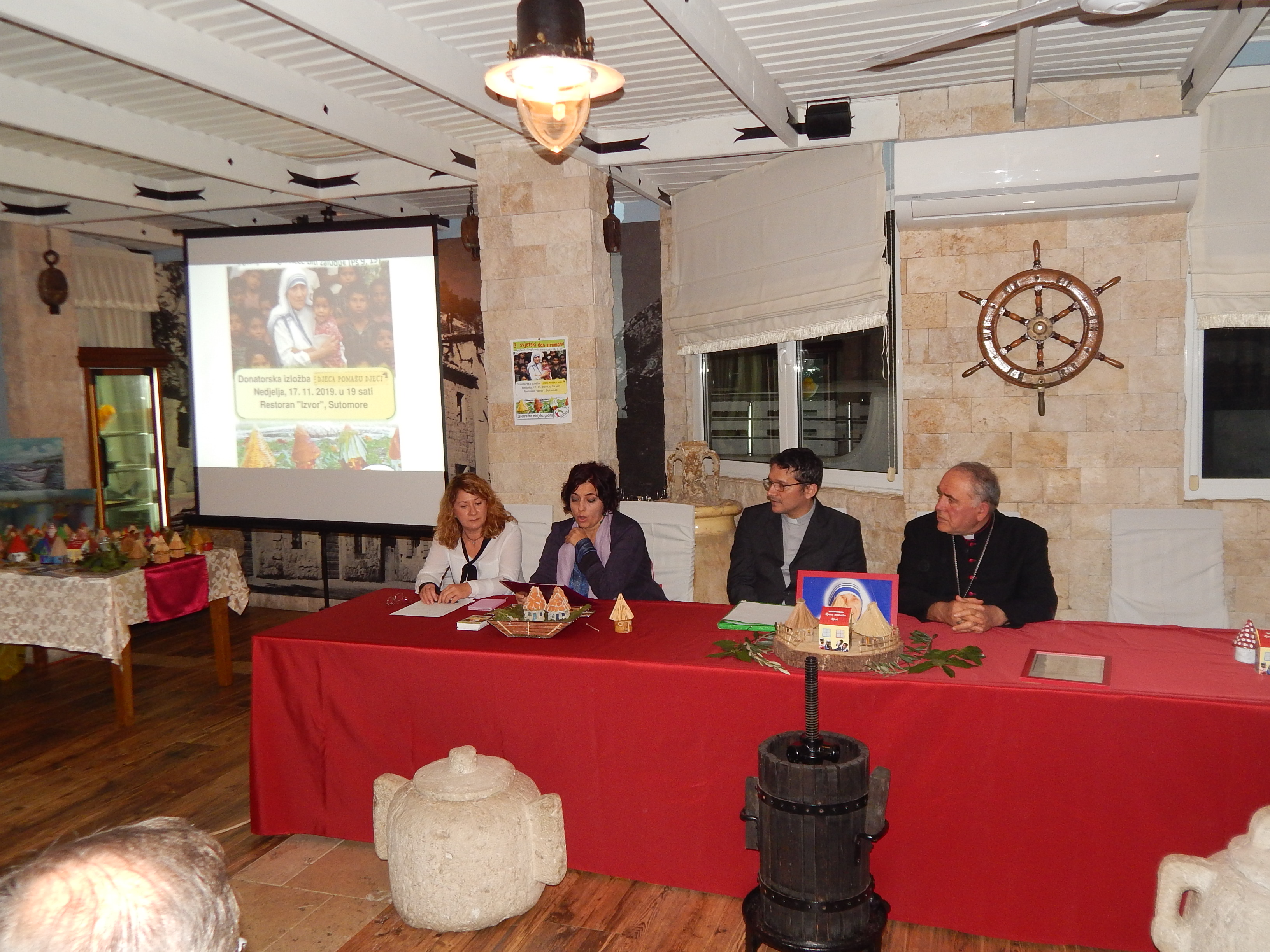 U večernjim satima u mediteranskom ambijentu sutomorskog restorana „Izvor“ održana je donatorska izložba „Djeca za djecu“. Svečanosti su nazočili Nadbiskup barski i apostolski administrator Kotorske biskupije Rrok Gjonlleshaj, svećenik u Baru don Kelmend Spaqi, Milosrdne sestre Sv. Križa iz Bara s provincijalnom poglavaricom iz Đakova, s. Valerijom Široki, Sestre franjevke od Bezgrješnog začeća – Crnogorske provincije, predstavnici mjesnih vlasti kao i predstavnici različitih humanitarnih udruženja i nevladinih organizacija, istaknuti pojedinci i volonteri koji djeluju na području barske općine, pomažu siromašne, volontiraju u radu sa starijima na župama, pomažu u zbrinjavanju životinja, brinu se da okoliš bude čistiji i ljepši. Večer je vodila Ana Čakalović.