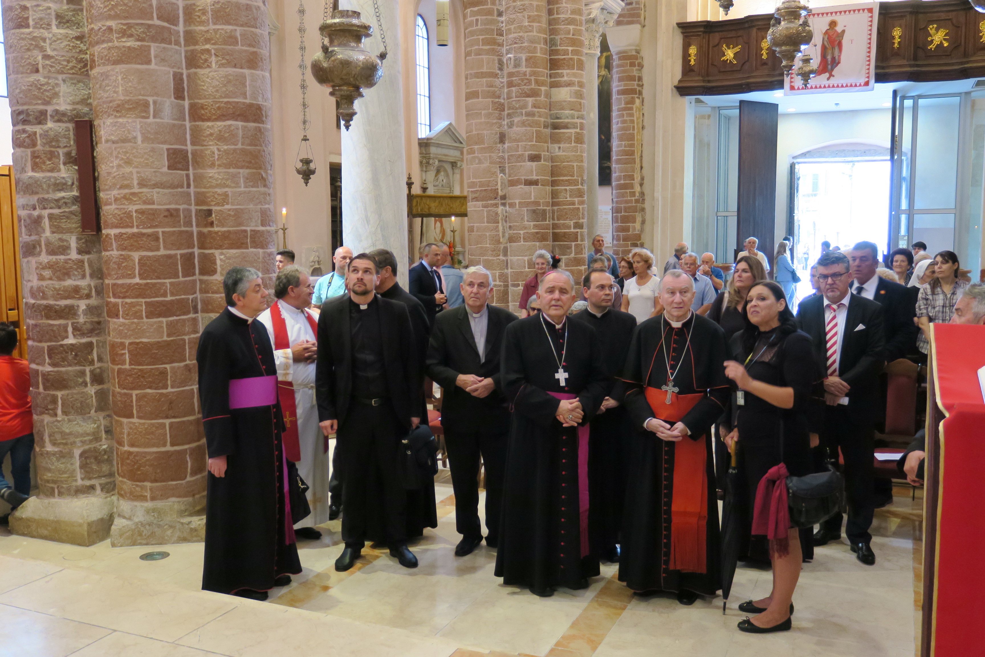 Dolazak kardinala Parolina u Kotor gromoglasno su najavila sva zvona katedrale sv. Tripuna. Na vratima od Grada, kardinala su u pratnji apostolskoj nuncija mons. Pezzuta i mons. Giovannija Gasparija, savjetnika nuncijature prvog reda, dočekali generalni vikar Kotorske biskupije, don Anton Belan i predsjednica Skupštine Općine Kotor, gospođa Dragica Perović, a po ulasku u grad, kotorski biskup mons. Ilija Janjić u pratnji kancelara biskupije don Roberta Tonsatija.