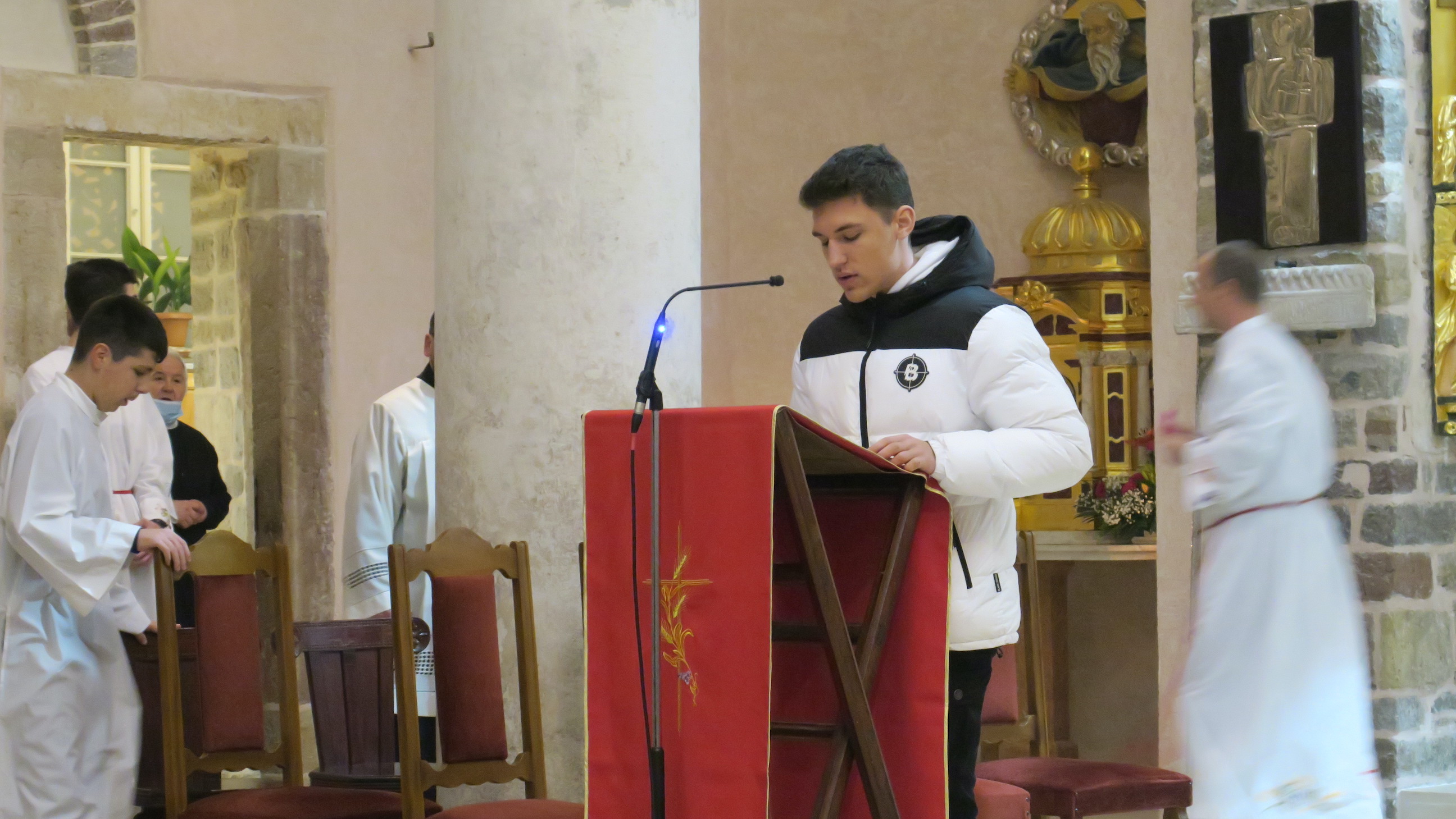 Skladnim liturgijskim pjevanjem misno je slavlje uzveličao župni zbor Kotorske katedrale uz orguljsku pratnju s. Dragice Kuštre, a počasnu stražu držala su dva mornara Bokeljske mornarice. Uz vjernike iz Kotora i okolnih župa, svetoj misi prisustvovao je i predsjednik općine Kotor kao i predstavnici Hrvatskih institucija i udruga u Crnoj Gori.