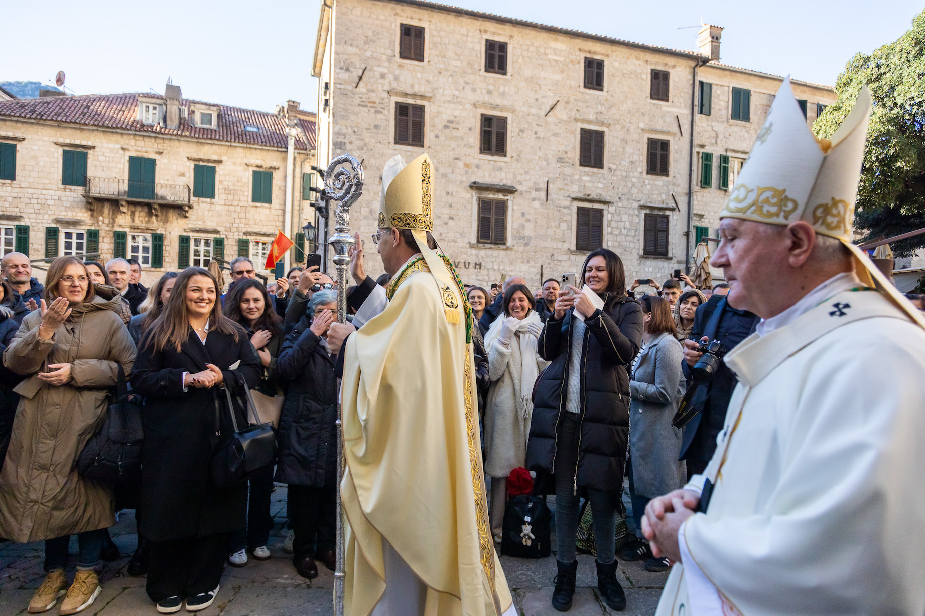 „Posvetom za biskupa preuzeli ste novu dužnost i sjeli ste na časnu katedru kotorskih biskupa koja svoje početke vuče iz ranokršćanskog perioda“, rekao je don Siniša Jozić, napomenuvši kako je kler Kotorske biskupije svjestan da nema Crkve bez biskupa.