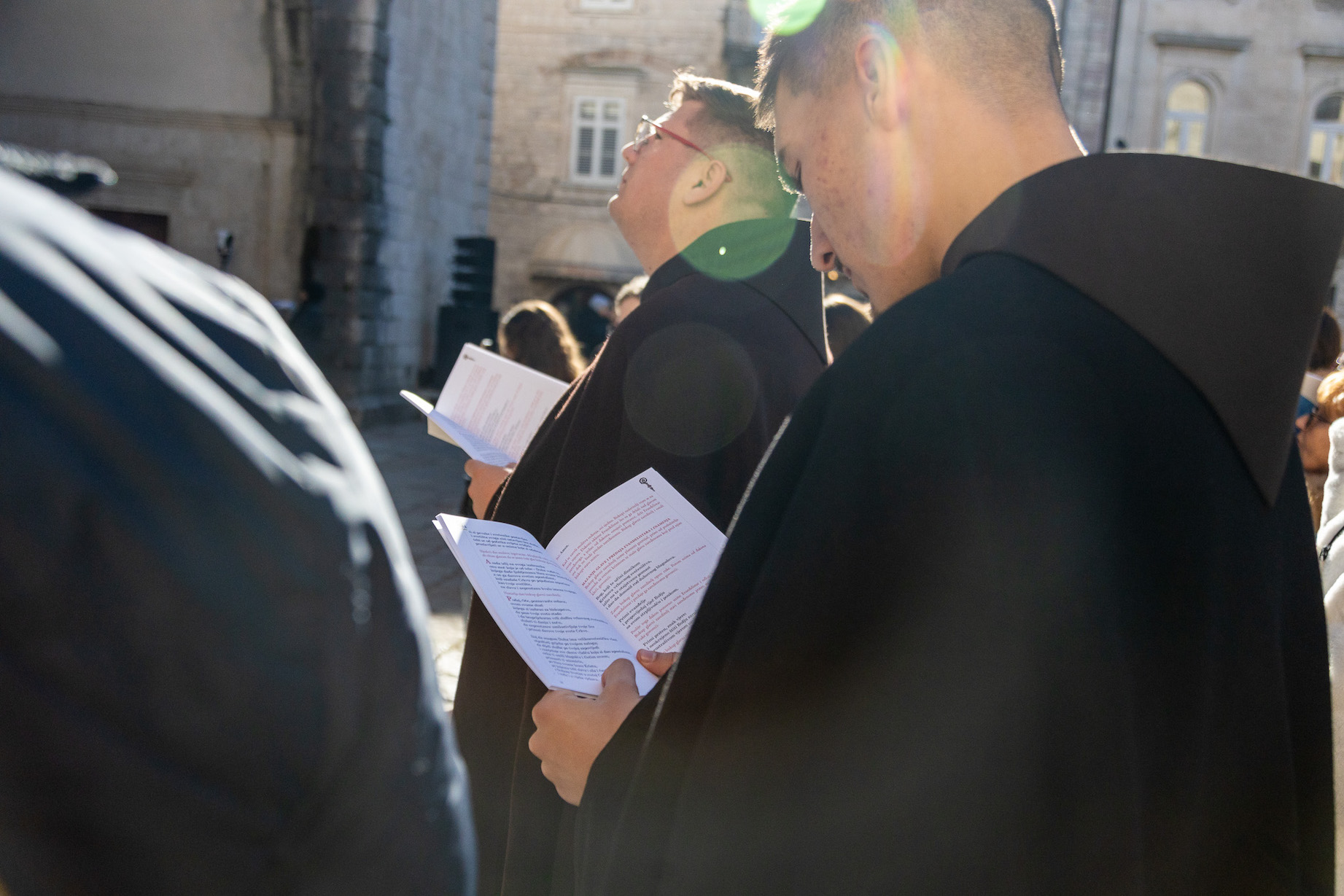 Cijelo slavlje biskupskog ređenja odisalo je iznimnom svečanošću i skladom, čemu je uveliko pridonijelo liturgijsko pjevanje združenih zborova „Fra Grga Matić“ iz župe Posušje i Župnog zbora Kotorske katedrale. Pjevanjem je ravnala s. Ivana Džeba uz pratnju na orguljama Ivane Pekas. Kotorski zbor uvježbale su Anđela Homen i s. Dragica Kuštre. U liturgijskoj asistenciji bili su bogoslovi Hercegovačke franjevačke provincije iz Zagreba i katedralni ministranti, a ceremonijari su bili fra Andrija Majić i don Robert Tonsati. Hodočasnici iz Posušja, Vitine, te drugih župa iz Hercegovine, i iz Hrvatske kao i domaći vjernici, dupke su ispunili Trg sv. Tripuna molitvom i sabranošću.
