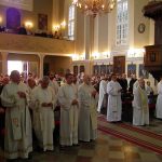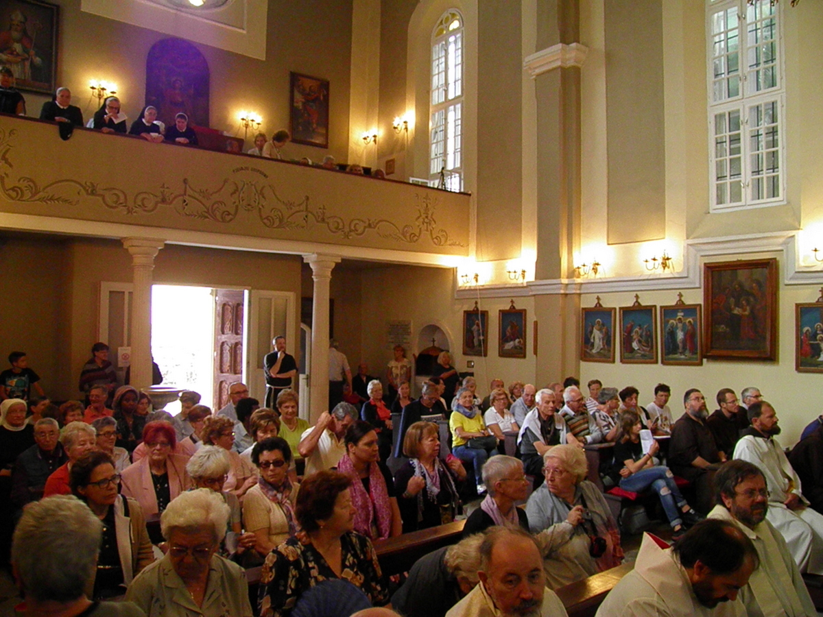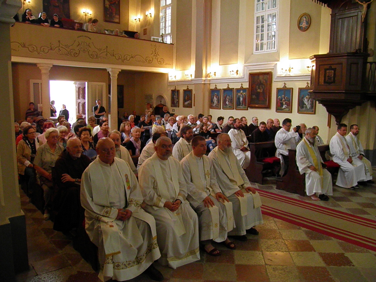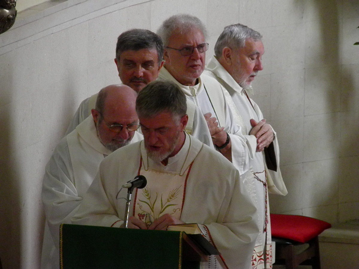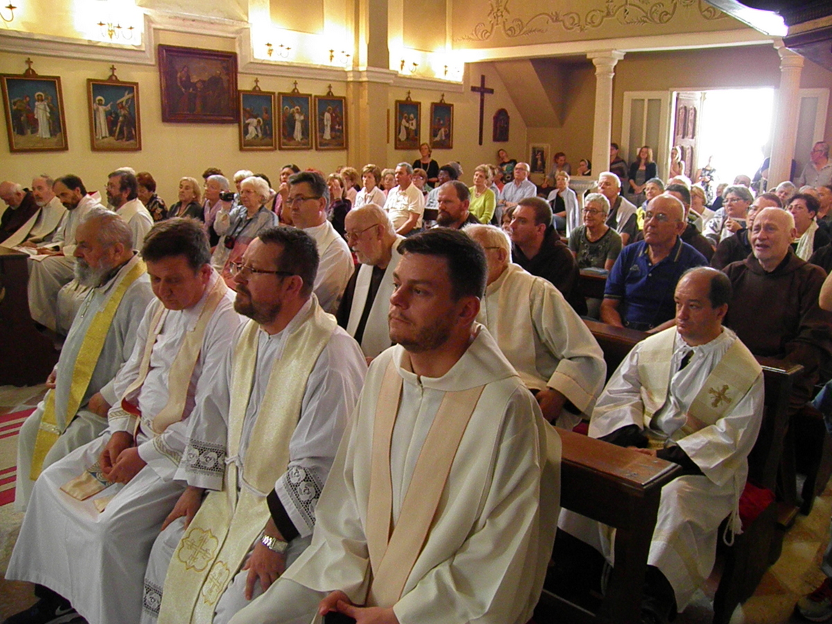 Uz glasnu zvonjavu župne crkve, hodočasnike je dočekao kotorski biskup,mons. Ilija Janjić, koji je predslavio euharistiju u župnoj crkvi sv. Jeronima u kojoj je prije 150. godina sv. Leopold primio milost krštenja. U propovijedi koju je na talijanski jezik prevodio fra Jure Šarčević, provincijal Hrvatske kapucinske provincije, biskup je iskazao svoju radost zbog tako velikog broja posvećenih osoba i štovatelja sv. Leopolda. Biskup je potaknuo okupljene redovnike, da po primjeru sv. Leopolda budu radosni navjestitelji Božje riječi i djelitelji sakramenata u svijetu koji se sve više udaljava od Boga. «Mi smo dužni vratiti sve udaljene Bogu, a to možemo učiniti samo ako posjedujemo nutarnju autentičnost vjere i poziva, ako zajedno sa sv. Pavlom možemo za sebe reći da Krist živi u nama.» Biskup je nadalje upozorio osobe posvećena života da se ne smiju umoriti od službe sakramenata, osobito sv. Ispovijedi koja je u zapadnom svijetu sve više zapostavljena. «Nije dovoljno samo pomoći nekom da se obrati, nego mu treba pomoći da nastavi rast i izgradnju u vjeri, a to je moguće samo pružanjem duhovnog vodstva i pratnje. Nikad ne smijemo dopustiti da naše djelovanje okalja lice Kristovo, lice Crkve». Govoreći o sv. Leopoldu, biskup Janjić je rekao da je mjesna Crkva ponosna na svog sveca, ponosna što je upravo tu rođen i što je tu proveo svoje djetinjstvo. Drugi razlog ponosa je taj što je sv. Leopold odabran za suzaštitnika Godine Milosrđa. Također, nastavio je biskup, i vjernici Padove trebaju biti podjednako ponosni što je sv. Leopold upravo u njihovoj sredini živio i svetački djelovao. Na kraju propovijedi, biskup je sve okupljene pozvao da se nadahnjuju na primjeru sv. Leopolda te zazvao njegov zagovor kako bi svi mogli iskreno i autentično živjeti svoj kršćanski poziv.