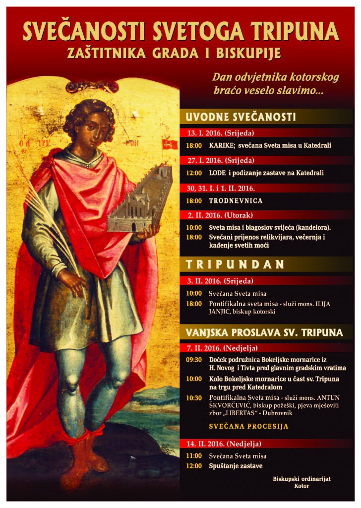 Program proslave Sv. Tripuna, nebeskog zaštitnika Grada Kotora i Biskupije