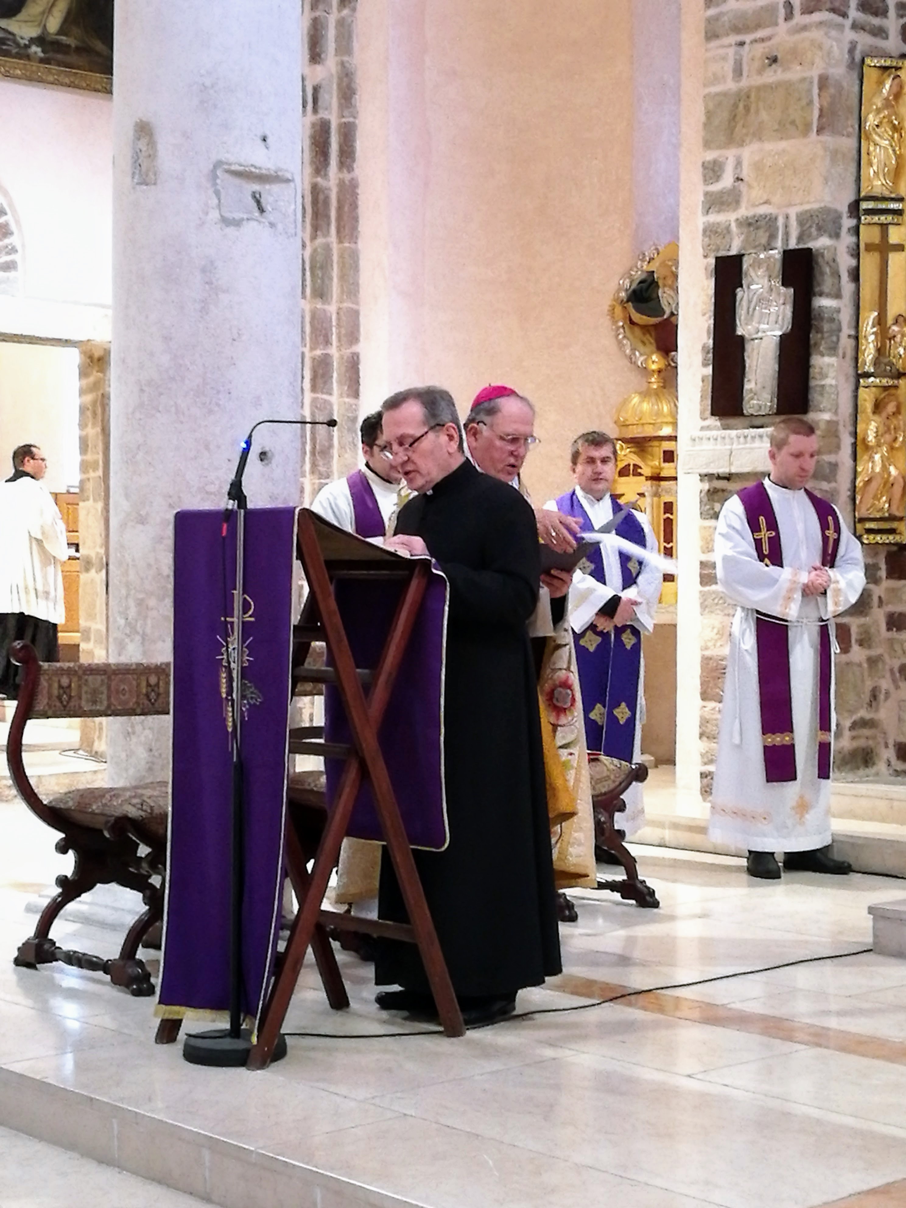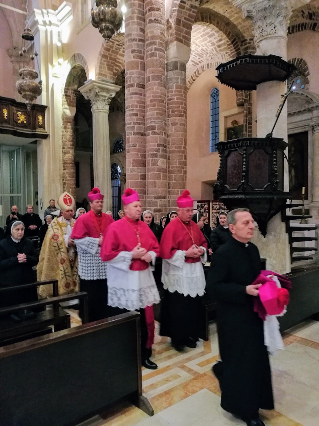 Proslava Dana posvećenog života imala je svoj vrhunac u koncelebriranom euharistijskom slavlju s pjevanom večernjom u katedrali. Prije same sv. mise upriličeno je ustoličenje novog počasnog kanonika Stolnog kaptola sv. Tripuna, preč. don Pavla Medača. Obred instalacije predvodio je kotorski biskup uz sudjelovanje ostalih kanonika stolnog kaptola.