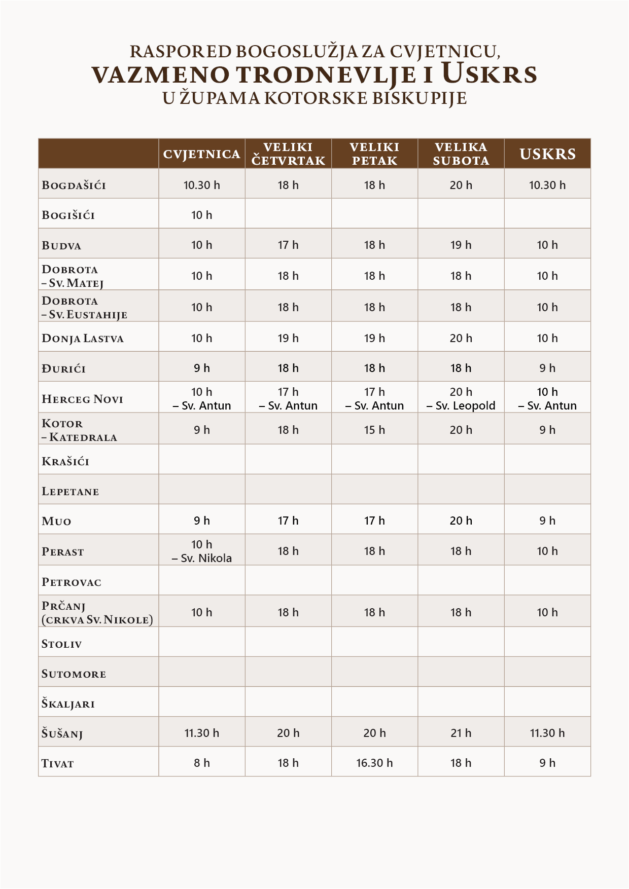 Raspored bogoslužja za Cvjetnicu, vazmeno trodnevlje i Uskrs