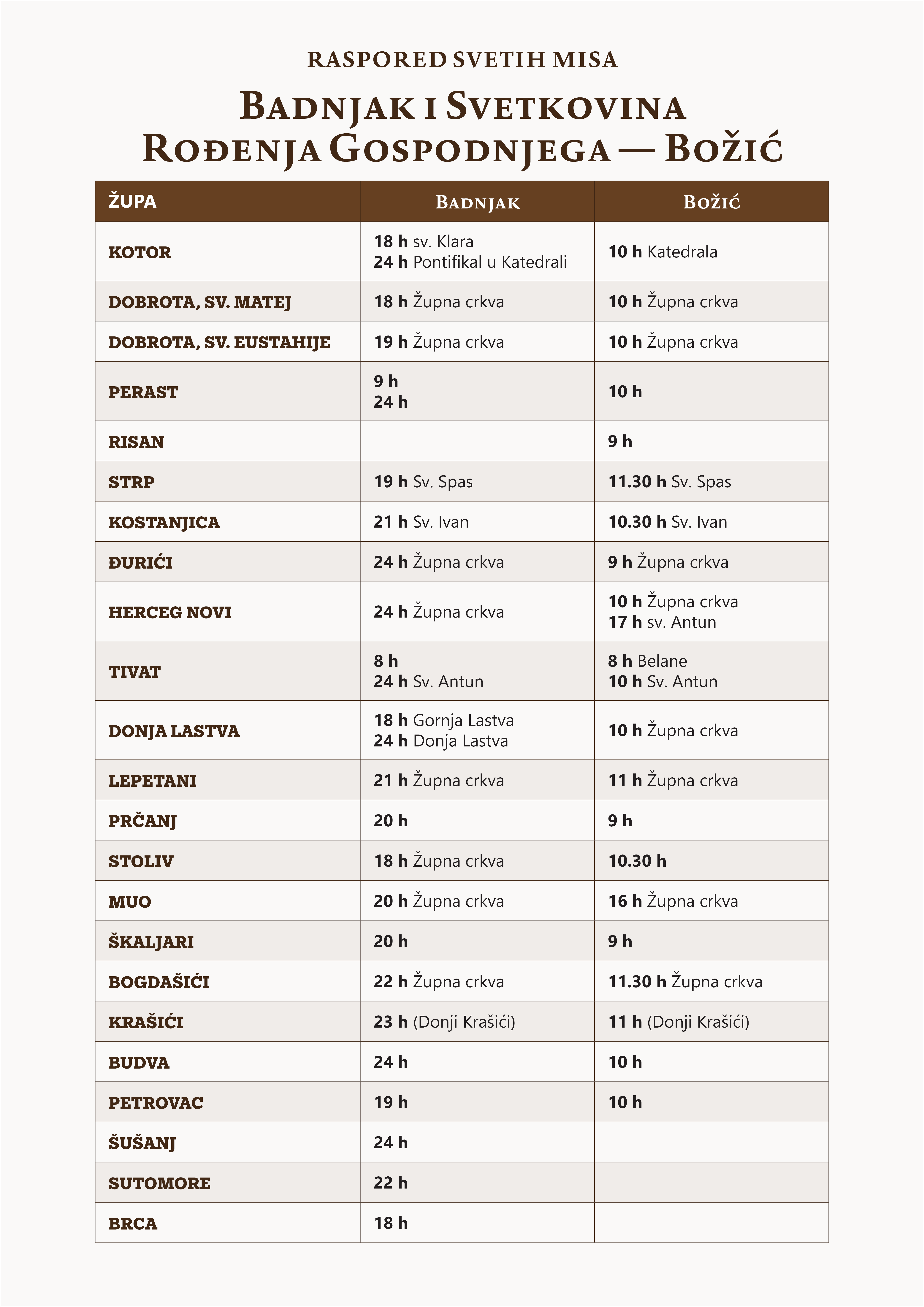 Raspored svetih misa na Badnjak i svetkovinu rođenja Gospodnjega — Božić