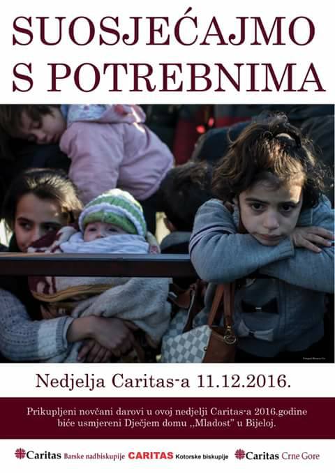 U subotu, 10. prosinca 2016. u Caritasovoj kući u Baru upriličen je susret djelatnika i volontera Caritasa Crne Gore (Caritasa Barske nadbiskupije i Kotorske biskupije). Povod susreta bila je Nedjelja Caritasa koja se obilježava na treću nedjelju Došašća. Moto ovogodišnje nedjelje Caritasa je “Suosjećajmo s potrebnima”.