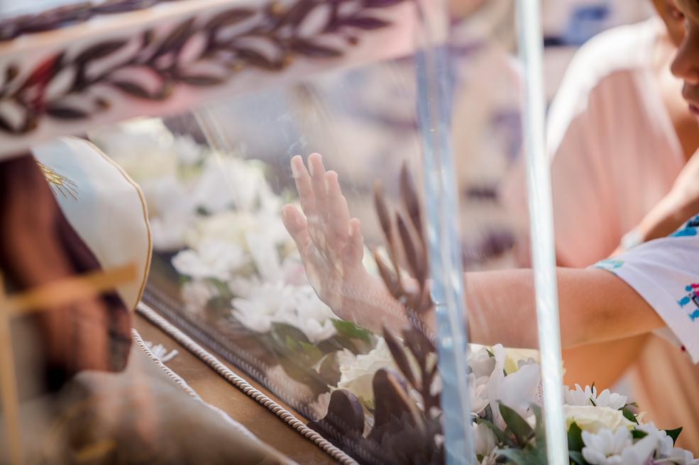 Galerija fotografija prvog dana boravka neraspadnutog tijela sv. Leopolda Mandića u Herceg Novom. Doček svečeva tijela, večernja molitva, bdjenje i prijenos u crkvu sv. Antuna. Autor fotografija je Miloš Samardžić.