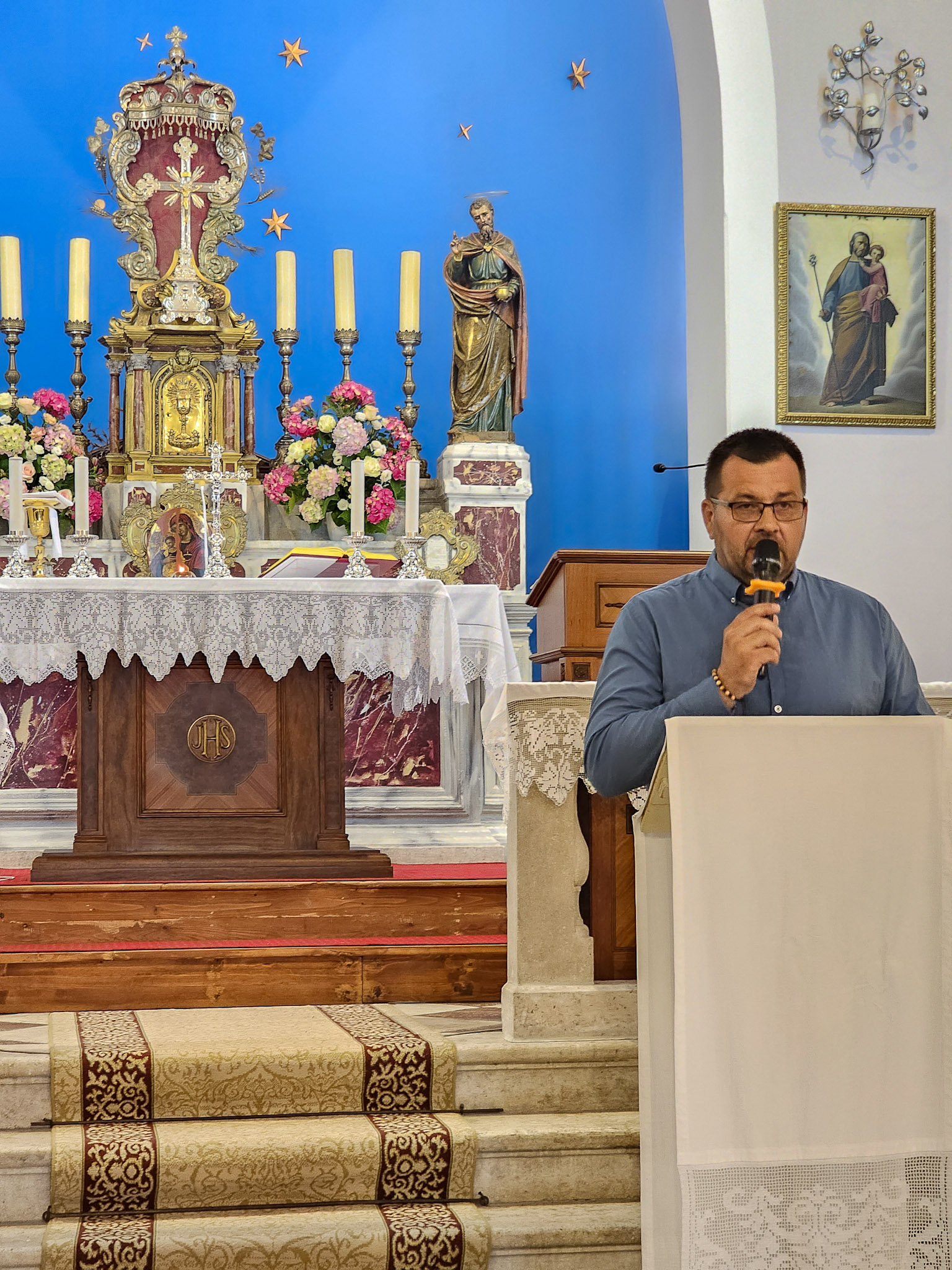 U svojoj homiliji vlč. Dragan je tumačeći evanđeoski odlomak o čudu u Kani Galilejskoj naglasio kako se nedostatak vina opisan u Evanđelju može shvatiti i kao nedostatak radosti i životnog poleta koji se očituje u krizi vjere: “Vjera je stalno u krizi i prijeti opasnost da se ugasi ili da je izgubimo. Danas imamo sve,ali osjećamo da nedostaje nešto što daje kvalitetu, okus životu. Nedostaje radosti, entuzijazma, prijateljstva, blizine – to daje okus, miris, ukus našim danima i stvarima… Marija nas uči da se može krenuti iz početka, iznova, da se može i s praznim posudama, da ni od čega može biti nešto, od maloga veliko, onda kada poslušamo Isusov glas.” Marija nas zagovara i vodi Isusu, k jedinom istinskom izvoru radosti, koji može ispuniti prazne posude našeg života, poručio je propovjednik, naglasivši Marijinu posredničku ulogu, istaknuvši da nas ona uvijek usmjerava na pravi put, k Isusu.