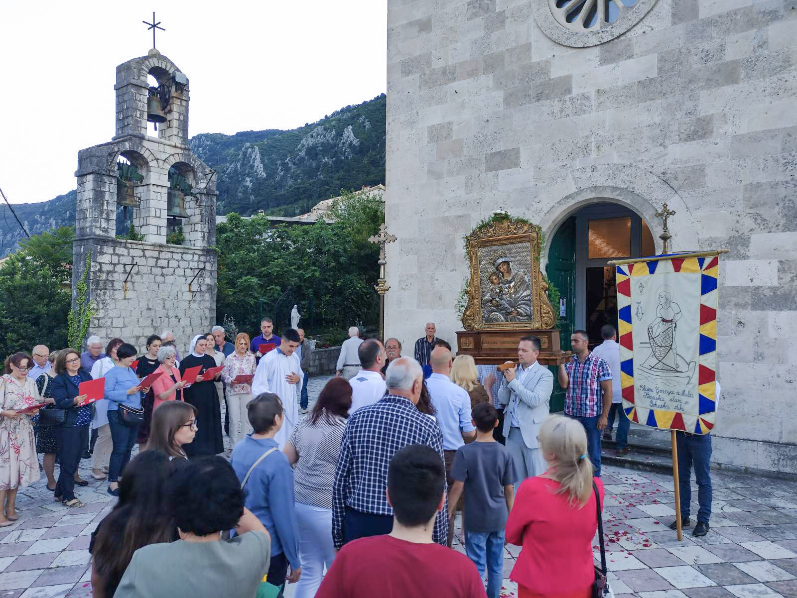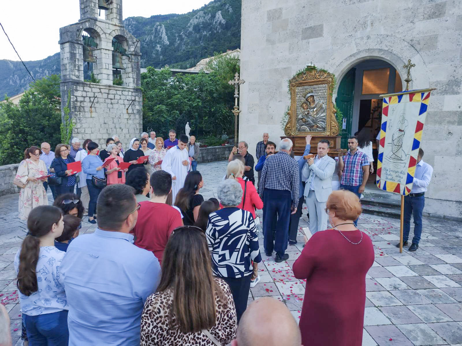 Na kraju misnog slavlja, župnik don Robert Tonsati, zahvalio je svima koji su dali svoj doprinos organizaciji ovogodišnje proslave, posebno zahvalivši predvoditelju vlč. Hrgiću, koji je predvodio trodnevnicu i svečanu misu. Nakon mise uslijedila je procesija kroz središte mjesta, a po povratku vjernici su izvršili tradicionalni zavjetni prolaz ispod slike Pomoćnice kršćana i iskazali štovanje relikvijama. Skladnim pjevanjem slavlje je uzveličao župni zbor kotorske katedrale kojim je ravnala Anđela Homen uz orguljsku pratnju s. Dragice Kuštre. Nakon mise i procesije, župljani i hodočasnici su se zadržali u druženju ispred crkve.