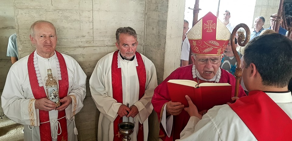 Na kraju sv. mise, đakon don Željko Pasković pročitao je sadržaj „Povelje“, dokumenta koji se stavlja u temelje novoizgrađenih sakralnih ili drugih crkvenih zdanja, a koji su prije pohranjivanja u bocu, potpisali i pečatirali biskup i provincijalna predstojnica sestara franjevki Bezgrešnog začeća s. Lidija Kqira.