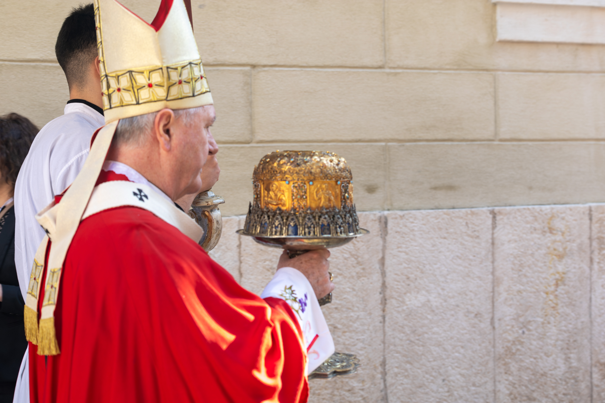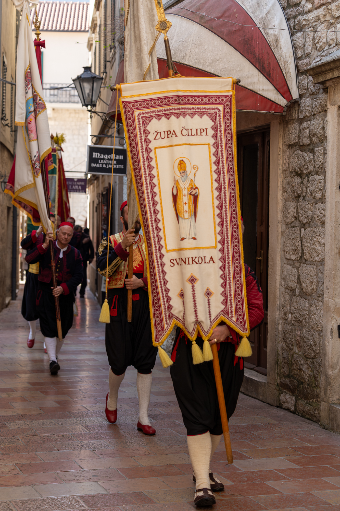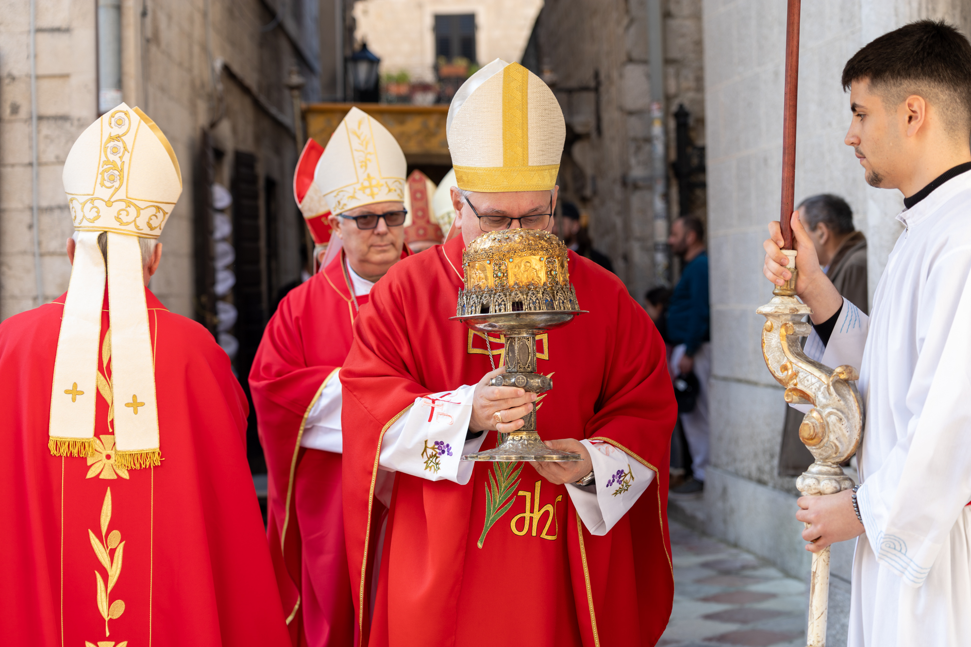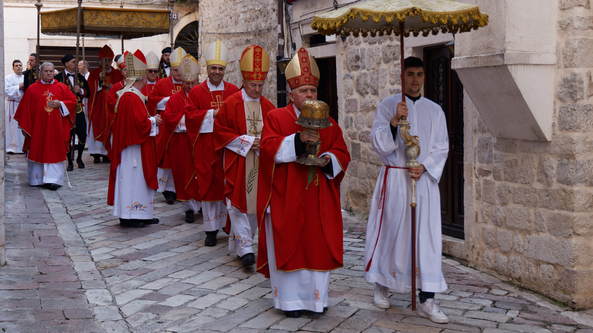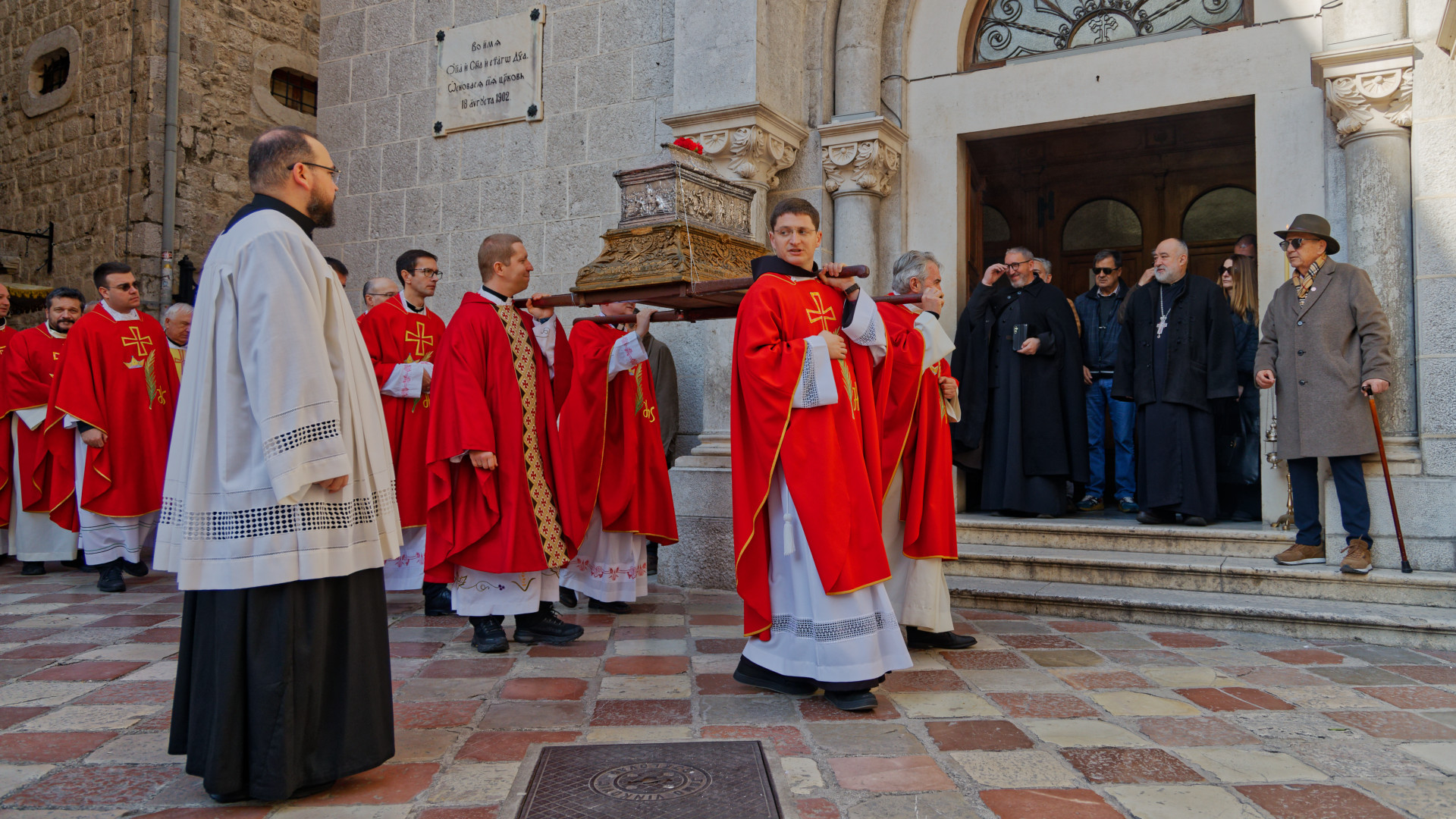 Misno slavlje liturgijskim je pjevanjem uzveličao župni zbor Kotorske katedrale pod ravnanjem Anđele Homen uz orguljsku pratnju s. Dragice Kuštre. Nakon mise upriličena je procesija ulicama grada. Članovi Bokeljske mornarice nosili su palket s moćima i baldahin iznad relikvije sv. Križa, svećenici srebrni kovčeg s relikvijama sv. Tripuna, a biskupi su se izmjenjivali u nošenju Slavne glave, dok je relikviju sv. Križa, prema običaju nosio biskup predslavitelj. Svećenstvo i vjernici Pravoslavne crkve na uobičajeni su način iskazali štovanje svetih relikvija ispred svojih hramova. U procesiji su sudjelovala tri orkestra limene glazbe: Gradska muzika Kotor, Glazbeno-prosvjetno društvo Tivat i Puhački orkestar KUD-a Lovro Ježek iz Marije Bistrice. Brojni hodočasnici, među kojima iz župe Sv. Nikole Tavelića iz Rijeke, bratstvo sv. Matije iz Čalopeka, župljani Konavala, Čilipa, Šibenika, različitih župa iz Hercegovine, te Kotorske biskupije, svojom prisutnošću i molitvenom podrškom, posvjedočili su snagu duhovnog zajedništva vjere.