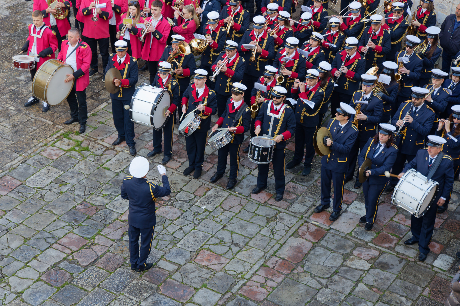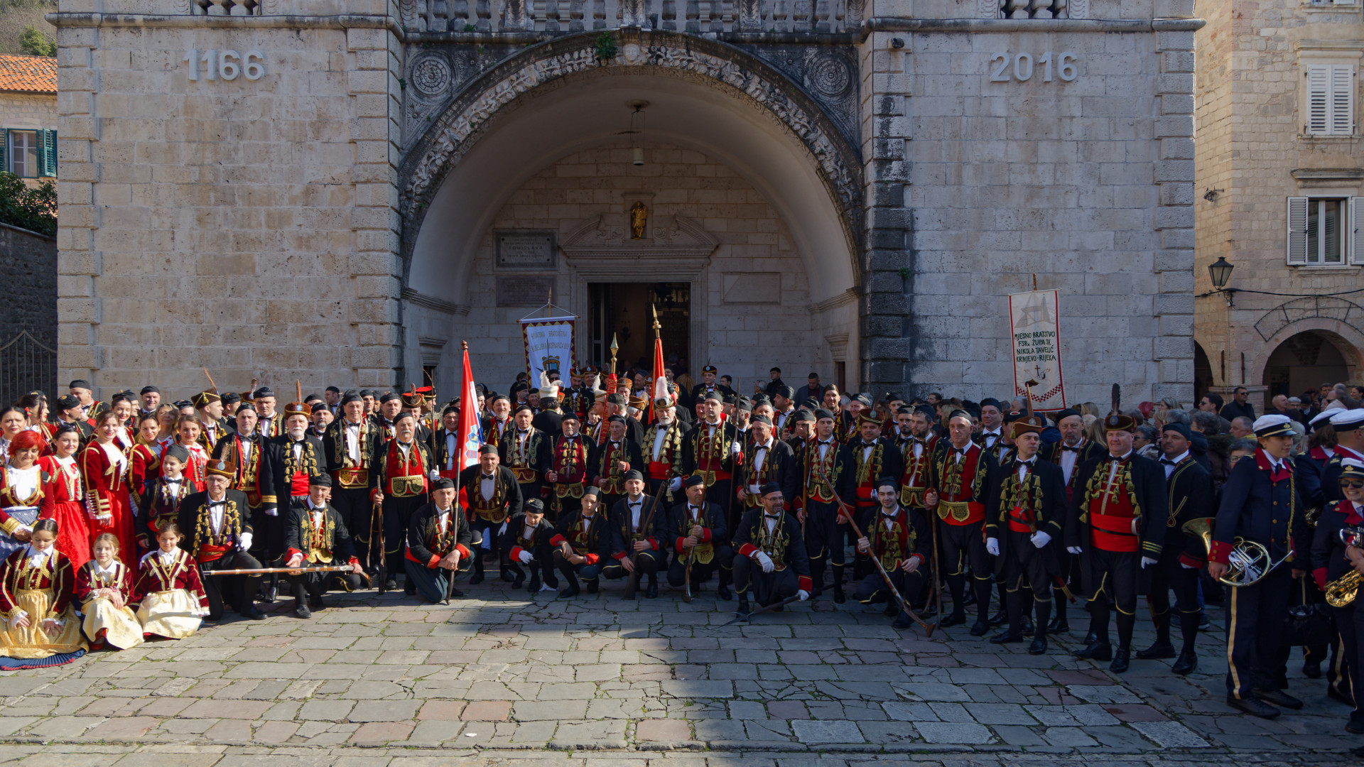 Proslava je započela svečanošću ispred glavnih gradskih vrata. Nakon postrojavanja i predaje zastave, te dočeka podružnih odreda iz Tivta i Herceg Novog, formiran je odred Bokeljske mornarice koji se u pratnji gradskih glazbi Kotora, Tivta i Marije Bistrice uputio pred katedralu Svetog Tripuna. Admiral Bokeljske mornarice, Mirko Vičević izvršio je smotru mornara te je ispaljen počasni plotun. Nakon što je kotorski biskup udijelio blagoslov, Bokeljska je mornarica odigrala tradicionalno kolo u čast sv. Tripunu uz pratnju orkestra gradske glazbe. Prvi put nakon više od pola stoljeća tijekom plesanja kola izvedena je zahtjevna figura “sidro”.
