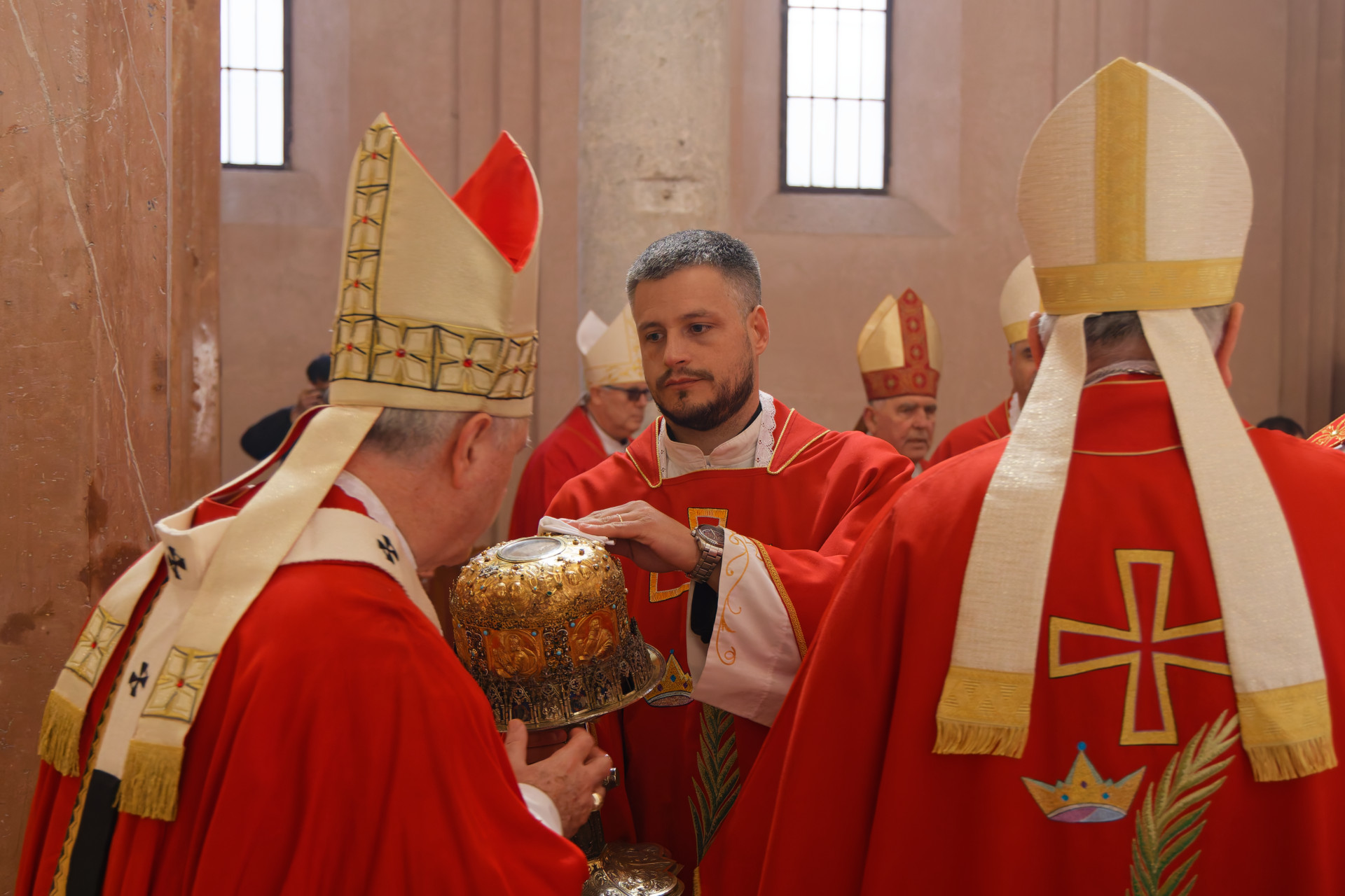 Suslavitelji na svečanoj euharistiji bili su Zdenko Križić, nadbiskup i metropolit splitsko-makarski, Milan Zgrablić, nadbiskup zadarski, Rrok Gjonlleshaj, nadbiskup barski, Tomislav Rogić, biskup šibenski, Ranko Vidović, biskup hvarski, Roko Glasnović, biskup dubrovački, Marin Barišić, splitsko-makarski nadbiskup u miru, Ilija Janjić, kotorski biskup u miru, provincijal hercegovačke franjevačke provincije fra Jozo Grbeš, don Nikola Menalo, izaslanik mons. Petra Palića, te brojni svećenici.