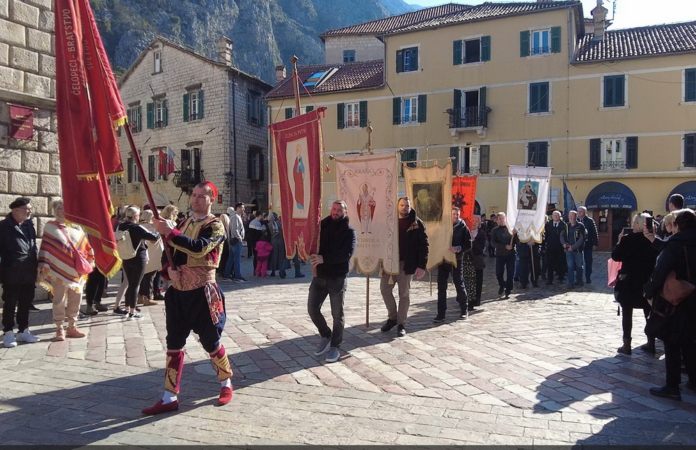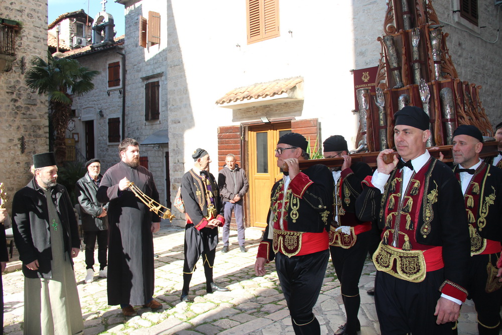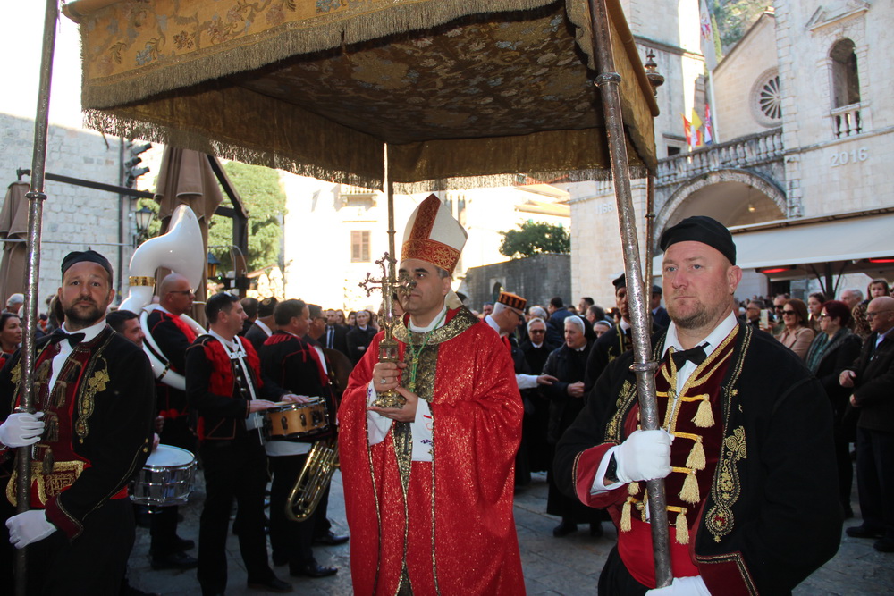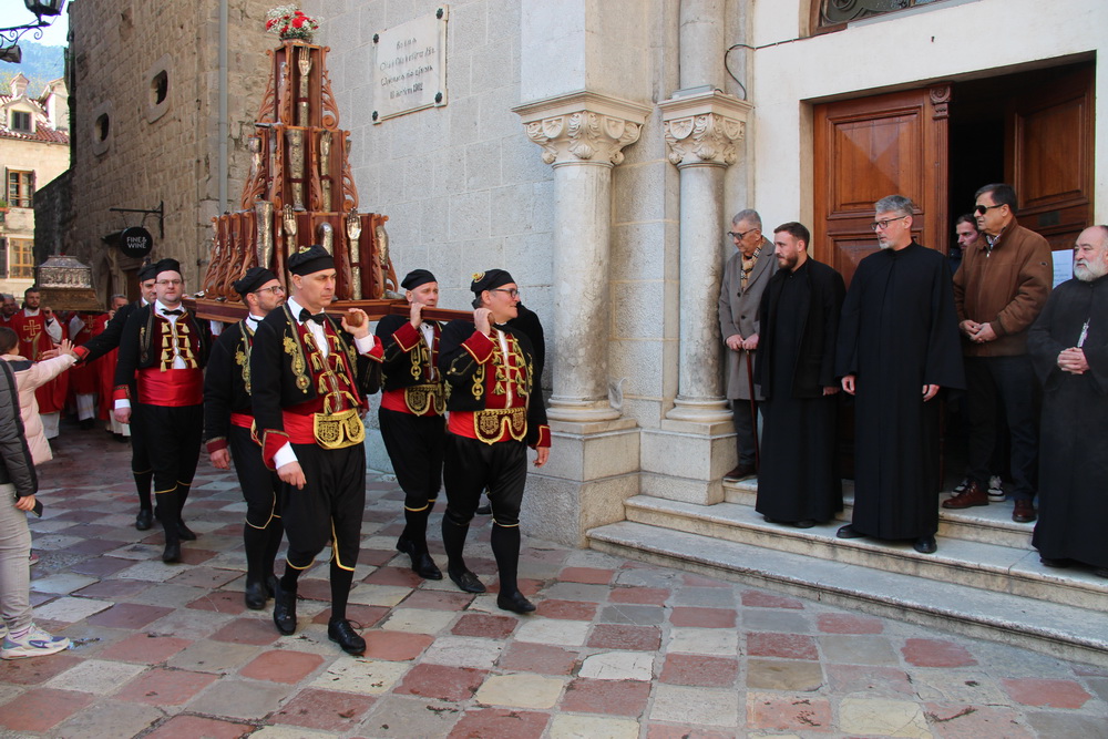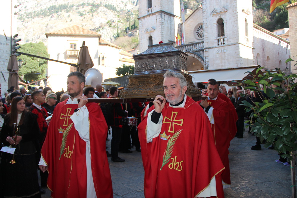 Nakon misnog slavlja uslijedila je procesija ulicama grada u kojoj su nošene relikvije Sv. Križa, sv. Tripuna i drugih svetaca čije se svete moći čuvaju u relikvijaru kotorske katedrale. Svete su moći ispred svojih crkava pozdravili vjernici pravoslavnih crkava. Procesiju su glazbom pratile Gradska muzika Kotor, Puhački orkestar KUD-a Lovro Ježek iz Marije Bistrice i Šibenska narodna glazba.