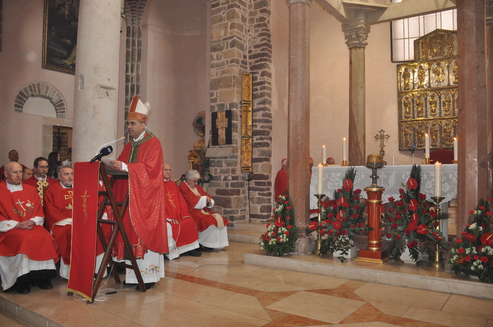 Biskup Glasnović je u homiliji govorio o snazi mučeničkog svjedočanstva vjere u vremenu koje je obilježeno vjerskom krizom, opadanjem broja vjernika te smanjenom religioznošću. Kao odgovor na suvremene izazove, biskup Glasnović je naglasio važnost vjere primljene u obitelji: „Stoga bi upravo očevi trebali biti glavni poticatelji stvaranja duhovnog ozračja u obitelji u kojoj se prakticira svakodnevna obiteljska molitva, čita Božja riječ i obiteljski sudjeluje u misnim slavljima i pobožnostima“.